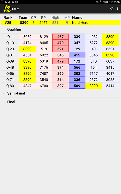 . Select one or more teams to follow by long-clicking their name on the "FTC Rank" screen, and see those teams highlighted in all screens.