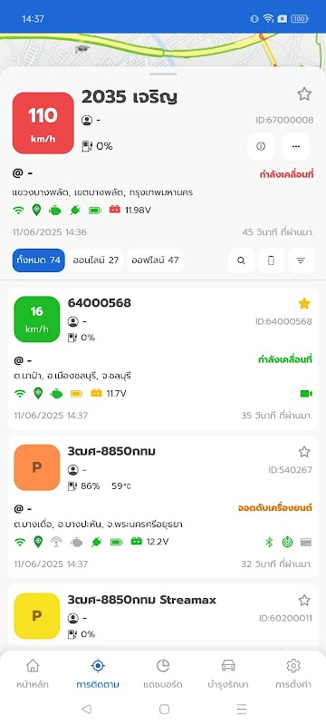 Afficher les informations sur les véhicules à partir des dispositifs de suivi de Forth Tracking System Co., Ltd.