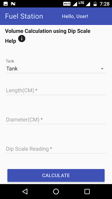 For other oil companies; The volume is calculated based on formula & you have to enter Length and Diameter of the tank yourself.