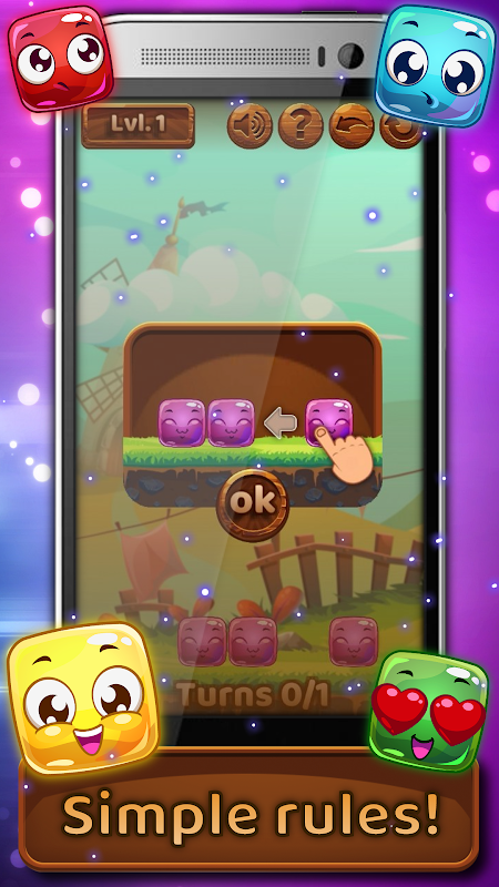 Votre tâche est de déplacer l'unité pour relier trois de la même dans une rangée. Les blocs sont les uns des autres, et vous avez un seul cours pour résoudre le puzzle! Pouvez-vous calculer correctement les mouvements et résoudre le problème en une seule étape? Téléchargez et testez votre force!