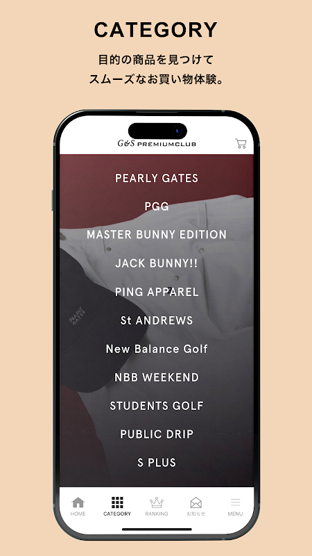 L'application GS Premium Club a été renouvelée ! Il est maintenant plus facile de trouver l'article de golf que vous recherchez. Nous fournirons des informations limitées et les plus récentes sur l'application par notification push.