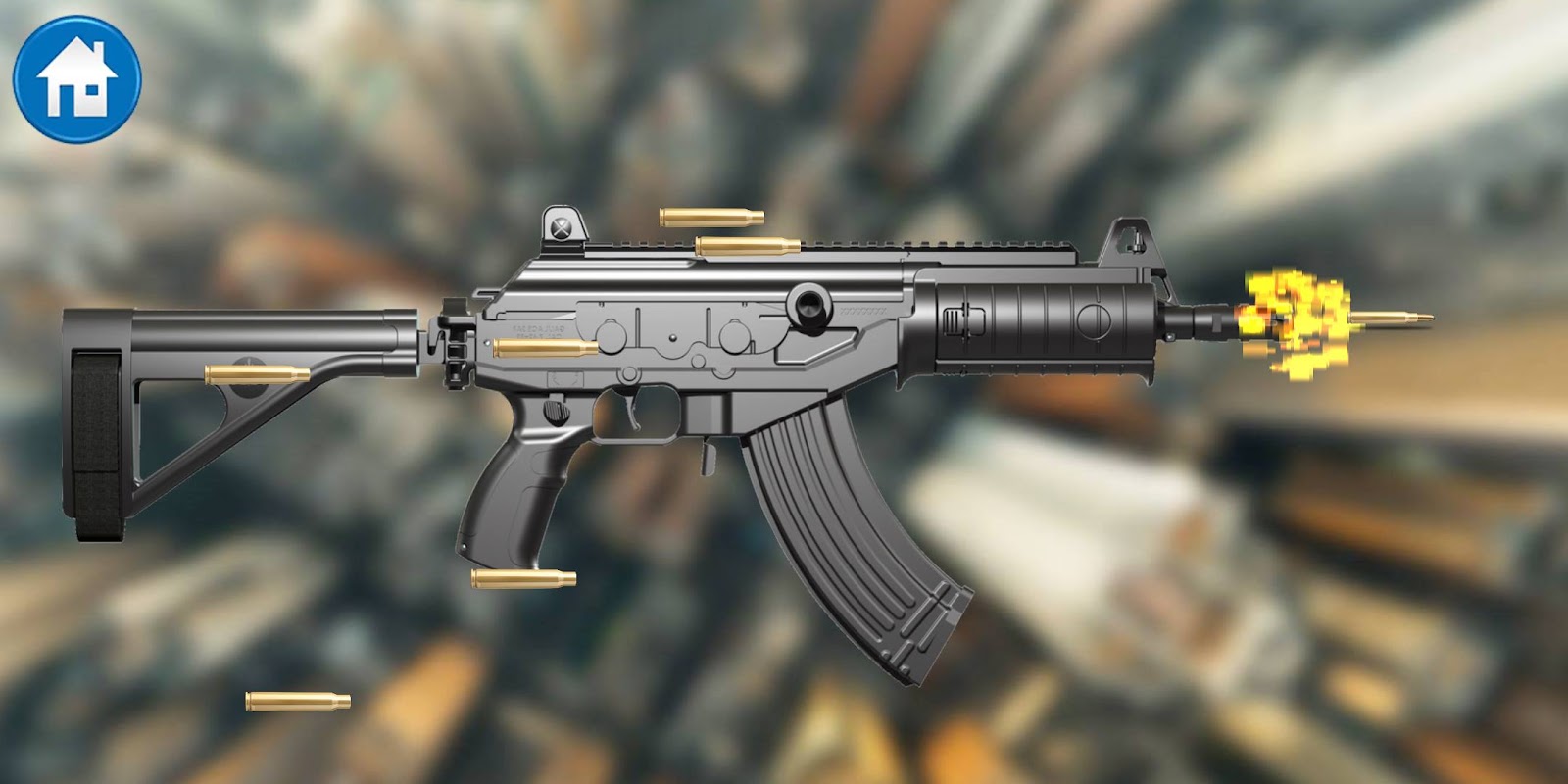 Are you ready for a realistic experience with Galil, one of the most famous machine guns, in the Galil machine gun simulator game? You can start experimenting by choosing one of 4 different weapons. First, you must choose your weapon and then you can shoot it by touching your finger anywhere in the game window. You can switch to the weapon changing screen by pressing the menu button at the top right.