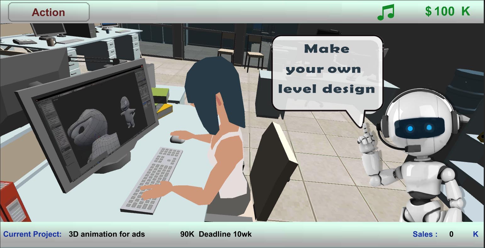 Vous commencez en tant que développeur de jeux vidéo indépendant, mais vous devez embaucher plus d'employés et créer plus de jeux vidéo, car votre objectif à long terme est de créer des jeux AAA et de grands succès sur le marché des jeux.