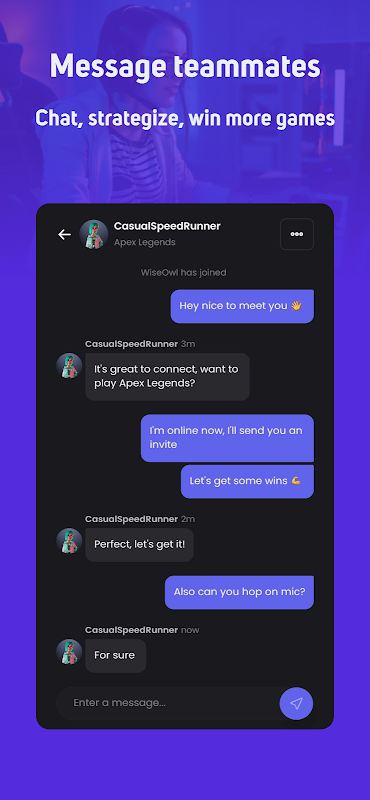 Besoin de quelqu'un avec qui jouer en multijoueur ? Trouvez des amis de jeu qui ont un micro pour à la fois élaborer des stratégies et discuter vocalement avec vos coéquipiers et de nouveaux amis de jeu pour rendre la victoire beaucoup plus facile ! Particulièrement utile pour les jeux en équipe tels que Fortnite, Destiny fireteams, Apex Legends, Rainbow Six Siege ou Call of Duty, qui peuvent vous donner, à vous et à vos amis joueurs, un avantage concurrentiel tout en utilisant le chat vocal contre les autres équipes.