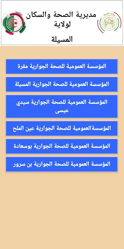 Institutions actuellement disponibles : provinces de M'Sila, Ain Defla, Khenchela et Jijel