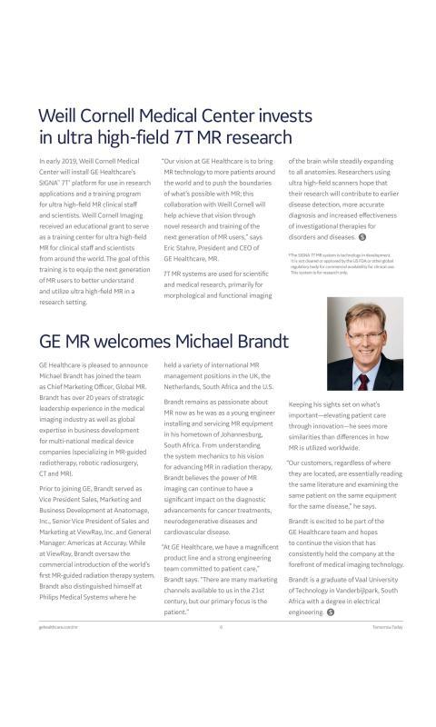 Each issue of SignaPulse features the latest news on GE MR systems and achievements. Clinical case studies using advanced GE MR techniques. Plus helpful information on patient safety, health economics, and managing your radiology practice.