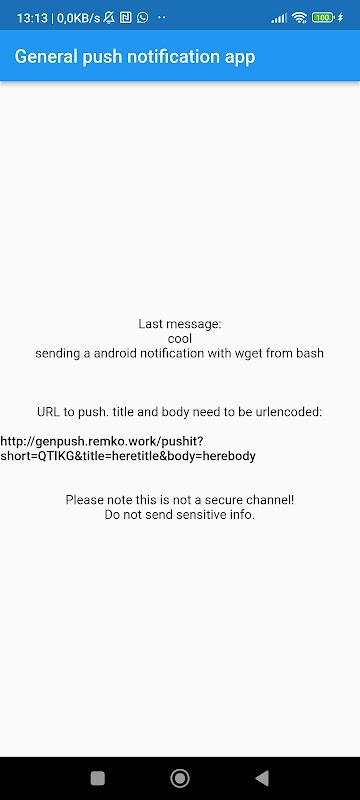 Lorsque vous installez l'application, vous obtenez un lien http comme pushapp.remko.work/short=xxxx&title=mymessage&body=mysubmessage