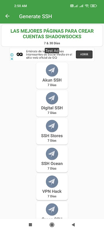 Puedes crear cuentas SSH de 30 días, 7 días, 5 días, 3 días, 1 día.