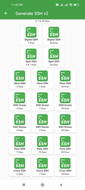 Vous pouvez créer des comptes SSH pendant 30 jours, 7 jours, 5 jours, 3 jours, 1 jour.