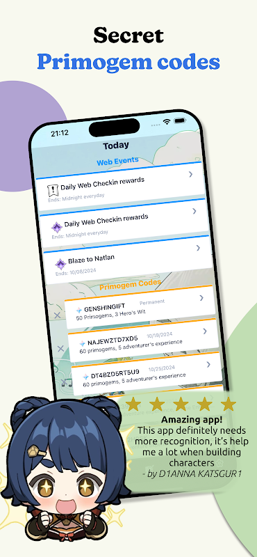 Notre application est 100% développée par des fans. Nous vous enverrons des notifications pour récupérer vos codes primo-gemmes gratuits, et vous aider au farming quotidien sur Genshin Impact.
