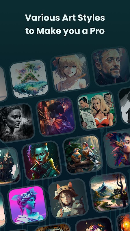 Explorez une variété de styles artistiques et de filtres pour exprimer votre créativité de manières infinies. Des styles Van Gogh et Picasso aux dessins animés et aux jeux vidéo, GenZArt a tout pour plaire !