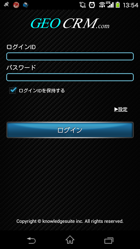 Suite des connaissances présente un smartphone seule demande de "GEOCRM.com", qui fournit des services d'assistance de travail mobile en utilisant les informations de localisation GPS.