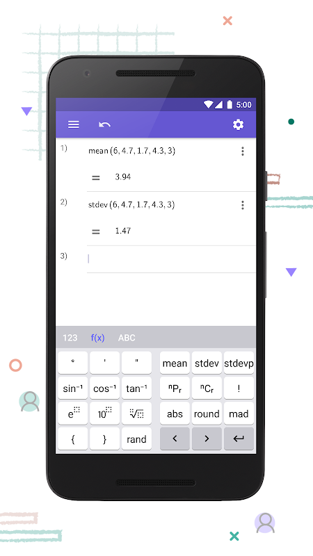 Remplacez votre calculatrice traditionnelle avec une application facile d'utilisation. Vous pouvez même l'utiliser pendant les tests avec notre mode spécial examens qui transforme votre téléphone ou votre tablette en une calculatrice de poche. Des millions d'utilisateurs du monde entier utilisent GeoGebra pour apprendre les maths et les sciences. Rejoignez-nous !