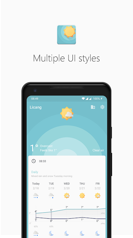 , Informations d'alerte, plusieurs styles d'interface utilisateur et fond d'écran météo en direct
