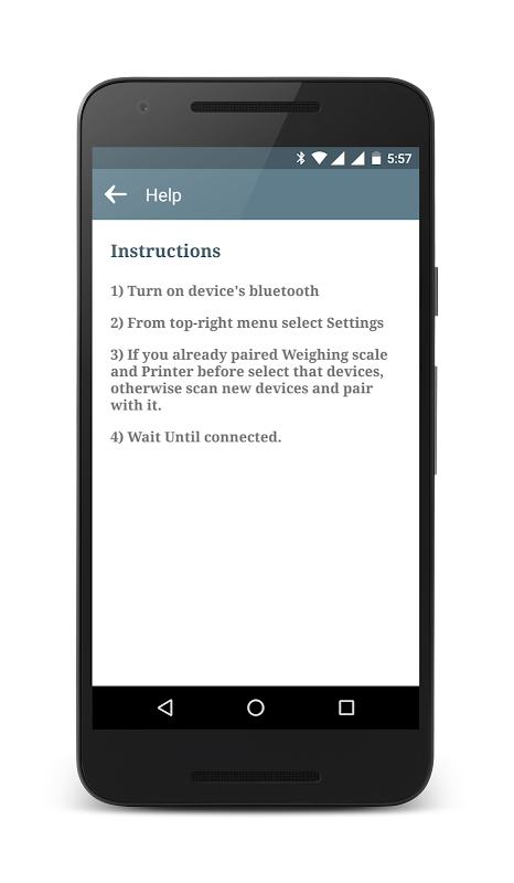 This is a bluetooth application. Gives you the ability to connect your bluetooth weighing scale and Bluetooth printer.