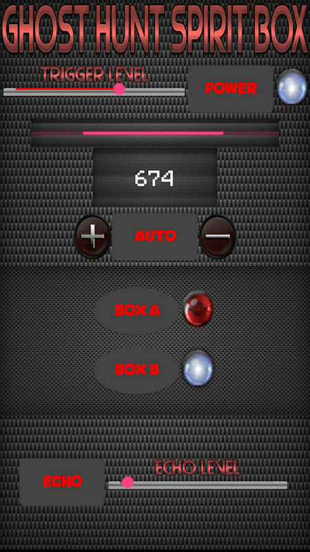 Ghost Hunt Spirit Box est une nouvelle application basée sur l'ancienne boîte P.A.I.R.S Spirit. Il analyse les banques audio inversées à l'aide de deux boîtes fantômes. Vous pouvez choisir d'utiliser la Boîte A, la Boîte B ou la Boîte A + la Boîte B, donnant un mélange de tons humains que les esprits peuvent manipuler.