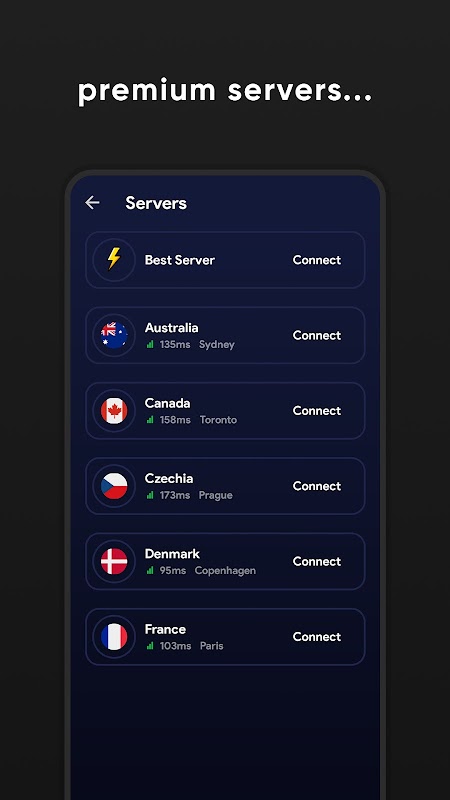 Couverture mondiale : Connectez-vous à des serveurs VPN haut débit dans plusieurs pays.