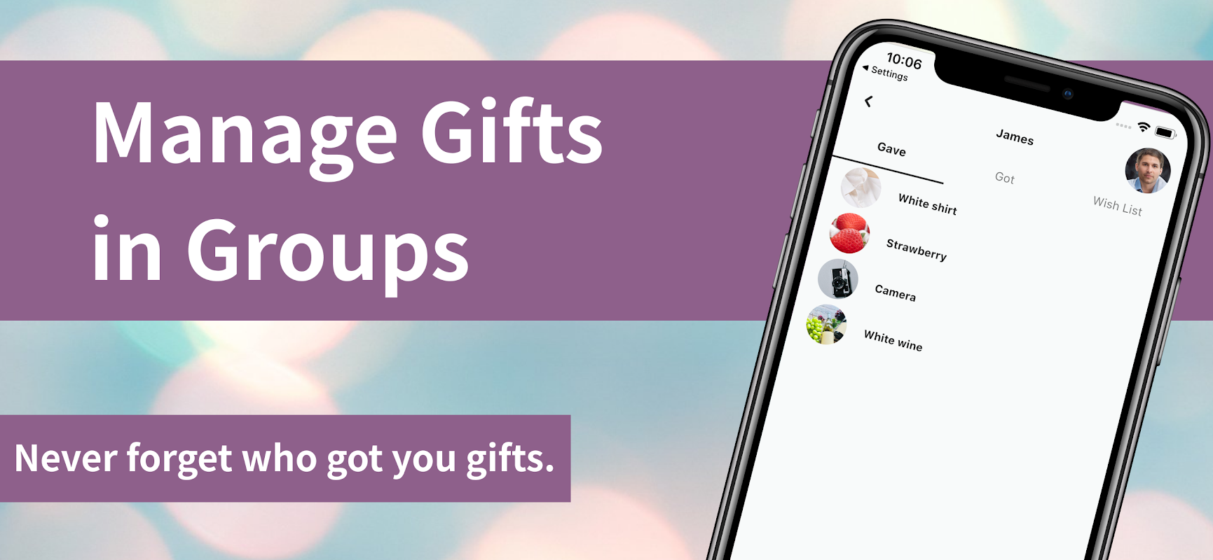N'oubliez jamais qui vous a offert des cadeaux. Gérez les cadeaux seul ou en groupe.
