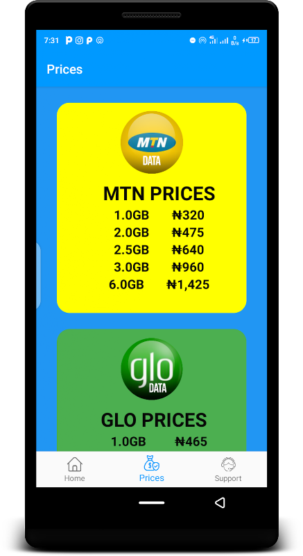 MTN, GLO ,AIRTEL and 9MOBILE data plans at affordable prices. Get 1GB as low as #430.