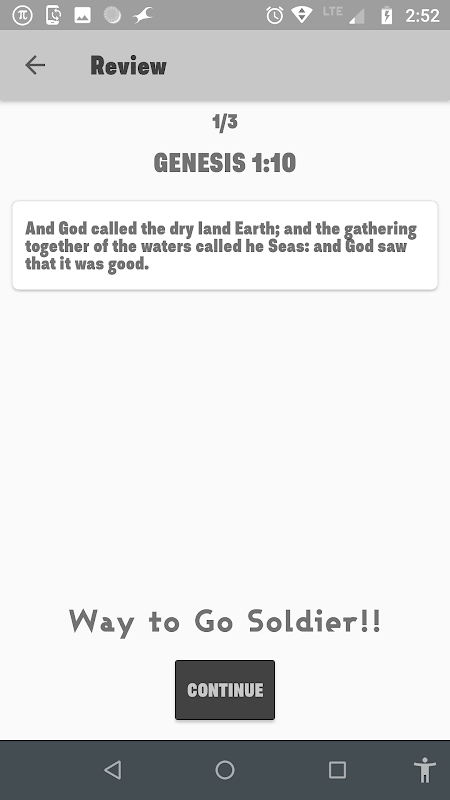 You can review Bible verses either manually by selecting responses, or you could do it through speech which automatically recognizes how accurate your recitation of the verse is with the actual verse.