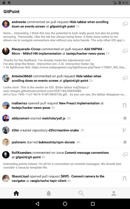 View repository and user information, control your notifications and even manage your issues and pull requests. GitPoint is the most feature-rich unofficial GitHub Android client that is 100% free.