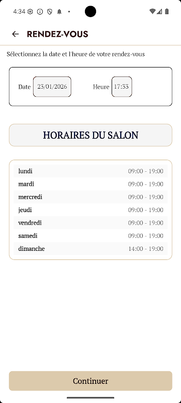 Lors de la réservation, si un salon spécifique propose une offre ou une réduction sur les services, les utilisateurs peuvent en profiter. Une fois un rendez-vous réservé, les utilisateurs peuvent consulter les détails de leur rendez-vous dans l'historique des rendez-vous, classés comme à venir, passés ou annulés.