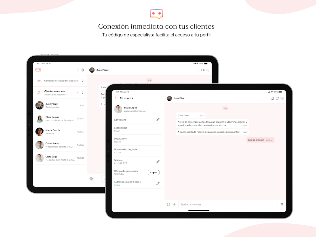 Global Doctors est l'outil idéal pour les professionnels de la santé (psychologie, nutrition, coaching, médecine générale, entre autres) pour gérer et développer leur pratique en ligne. Proposez des consultations par appel vidéo et organisez facilement votre agenda, l'historique de vos patients et vos communications à partir d'un seul endroit, en toute sécurité et sans complications.