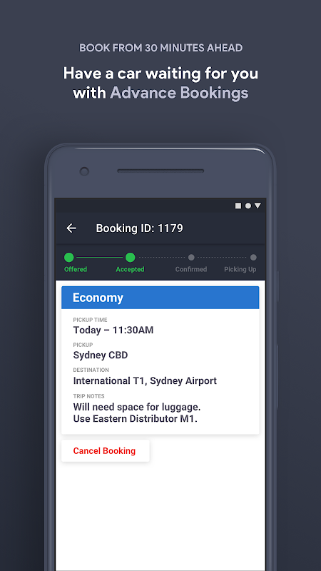There’s a GoCatch for every moment, whether it’s your daily commute, a trip to the airport or a night out with friends, and we’re available Australia-wide. Book ahead with Advance Bookings – have a car waiting for you right when you need it most, day or night – from 30 minutes to 1 year in advance.
