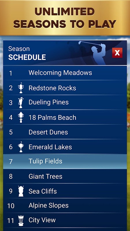 - Devenez le vainqueur de la saison en terminant les trous avec le moins de coups.