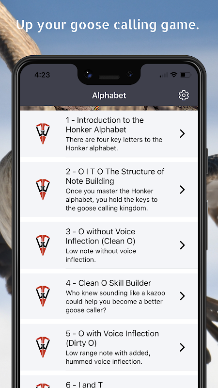 Goose Tech is the cutting edge of goose calling instruction. Under the guidance of the Goose Guru himself, Nick J, you will be able to hone your goose hunting, and, in particular, calling skills and better know how to successfully call in and kill more geese. Goose Tech is designed to take you on a goose calling journey. First, Nick J. covers the basics and introductory concepts. Then he graduates you to the root sounds in goose calls with a specially designed alphabet. Next, you learn a wide variety of goose sounds. Finally, you apply all of this knowledge with various calling sequences and skill builders. You can also record yourself calling and compare to the real sounds on the app. Finally, Nick J has taken his tried and true goose hunting tips and tactics to help you bring it all together.