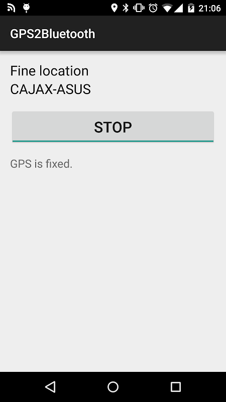 Ce widget transforme votre téléphone mobile en un récepteur GPS Bluetooth entièrement fonctionnel. Vous pouvez connecter votre PC et utiliser n'importe quel logiciel de bureau (comme par exemple Google Earth), ou autres NMEA compatibles.
