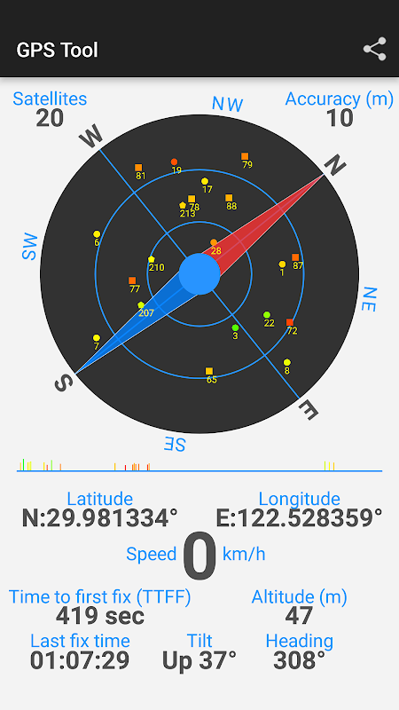 GPS compact et outil de test Compass, Partagez votre emplacement pour vos amis.