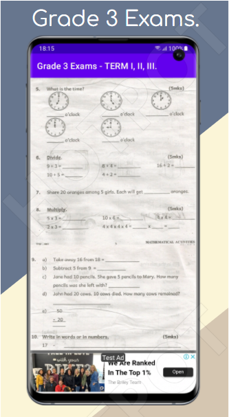 L'application propose des examens CBC de 3e année pour les trimestres 1, 2 et 3. Examens de 3e année: Les trimestres I, II et III sont conçus pour équiper les apprenants et les enseignants avec la configuration des épreuves d'examen de 3e année. L'application aiguise les apprenants avec des compétences, des connaissances et une expertise sur la façon d'aborder les questions présentées dans différentes disciplines (sujets).