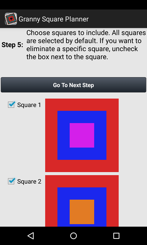 Étape 5: Choisissez carrés pour inclure sur votre couverture. Cette étape vous tous les carrés possibles de mamie que vos combinaisons de couleurs peuvent faire montre. Si il y en a que vous ne voulez absolument pas, puis décochez la case à côté de la place.