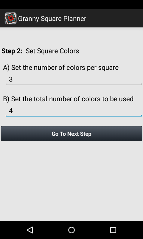 Étape 2: Définir le nombre de couleurs par carré de mamie, et le nombre total de couleurs que vous souhaitez utiliser. Par exemple, vous voudrez peut-être 3 couleurs par carré, mais 4 couleurs au total.