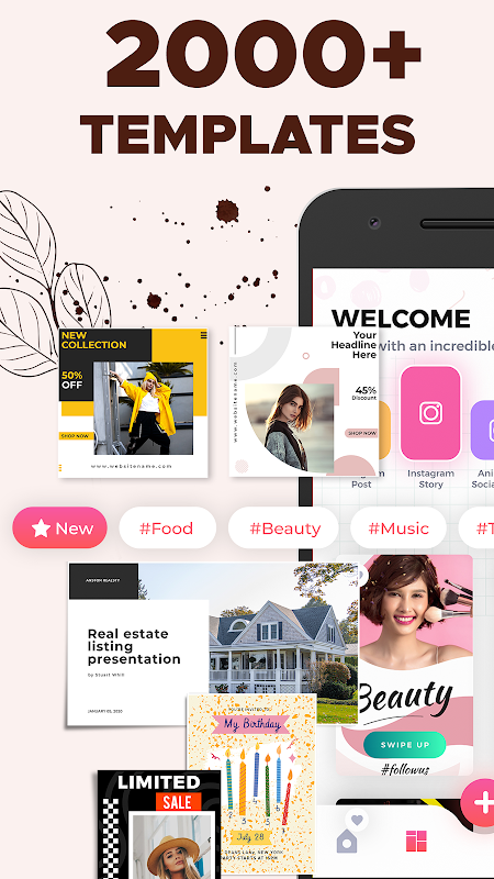⭐ Plus de 2000 modèles de publication Instagram, cartes d'invitation, mises en page de collage et modèles de vignettes YouTube avec différentes catégories.