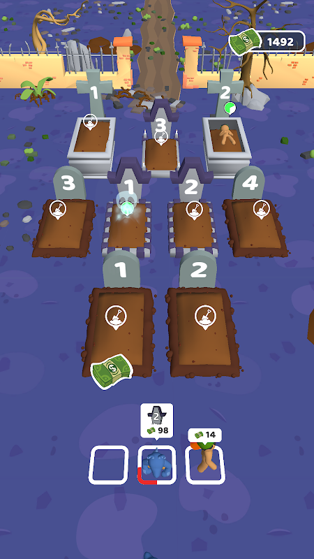 Dans ce jeu, vous gérez un cimetière. Nettoyez les tombes, déposez les clients au bon endroit !
