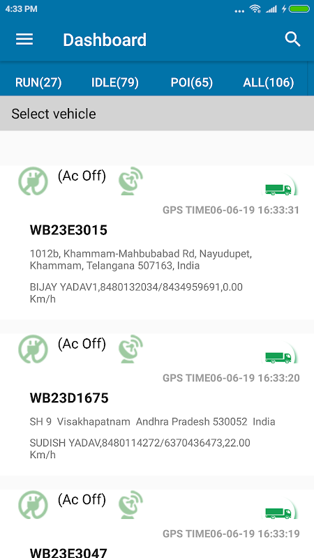 Facilement trouver et afficher l'emplacement de votre véhicule ou votre flotte entière. voir immédiatement leur statut - sont-ils en mouvement, la marche au ralenti ou à l'arrêt? Suivre toutes les activités, y compris départs, arrêts et la durée des arrêts.