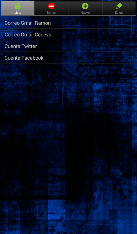 Sencilla aplicación para almacenar datos, olvídese de tener de recordar múltiples cuentas o de usar la misma contraseña para todo, en esta demo completamente operativa puede almacenar todos los datos precisos.