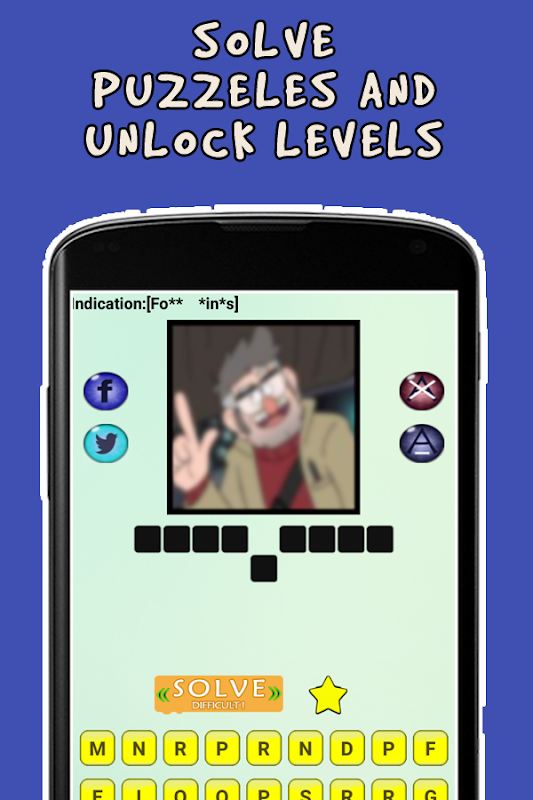 by installing this Gravity Falls Quiz you will have access to several levels including diffirent puzzles sorted by popularity ,in order to test your knowledge about the most popular serie..