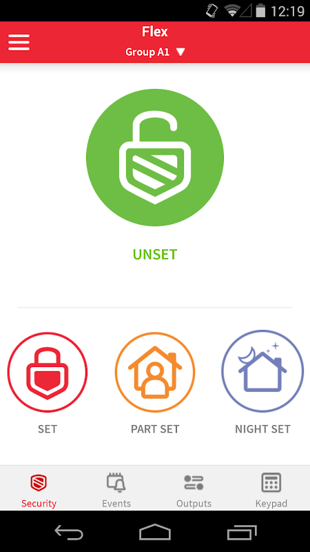 Pour permettre à cette application de fonctionner avec votre centrale Galaxy Flex ou Galaxy Dimension, contactez votre installateur de systèmes anti-intrusion pour discuter de la configuration et de son activation.