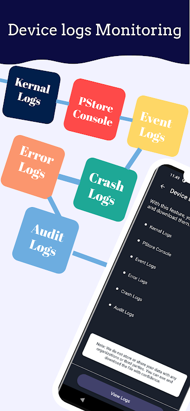 ⚡ Vérificateur de journaux d'appareil : Surveillez l'activité de votre appareil grâce à une visionneuse de journaux simple. Identifiez les problèmes et suivez les performances pour un fonctionnement optimal.