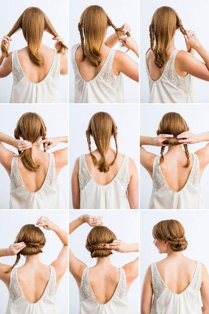 Cette coiffure chic et sophistiquée peut sembler compliquée au début mais c'est vraiment très facile. Rassemblez vos cheveux en une queue de cheval basse, puis commencez à le tordre pour former un chignon. Fixez-le avec un élastique. Complétez-le avec un bandeau élégant et vous êtes tous ensemble.