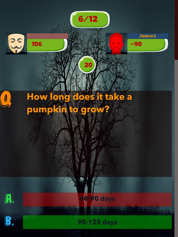 Ce jeu d'Halloween aide l'utilisateur à aiguiser ses connaissances et ses sens, à se préparer à des examens ou à des tests basés sur tous les aspects de l'Halloween et à accroître ses connaissances. Cette application cible les personnes de tous âges, même les enfants peuvent profiter des tests créés par cette application et améliorer leurs connaissances d'Halloween. Cette application peut être utilisée pour la préparation de quiz sur les écoles, les collages et les universités ainsi que pour les tests d'entrée. Cette application contient des fonctionnalités intéressantes comme la coloration des boutons en vert si la réponse est correcte, sinon la coloration du bouton en rouge parce que la réponse est incorrecte. Il offre une fonctionnalité multi-joueurs qui vous permet de jouer contre les joueurs du monde entier. Il contient de bons graphiques et moins de publicités. Cette application est extrêmement efficace, elle est développée de manière à pouvoir fonctionner sans problème sur n'importe quel appareil.