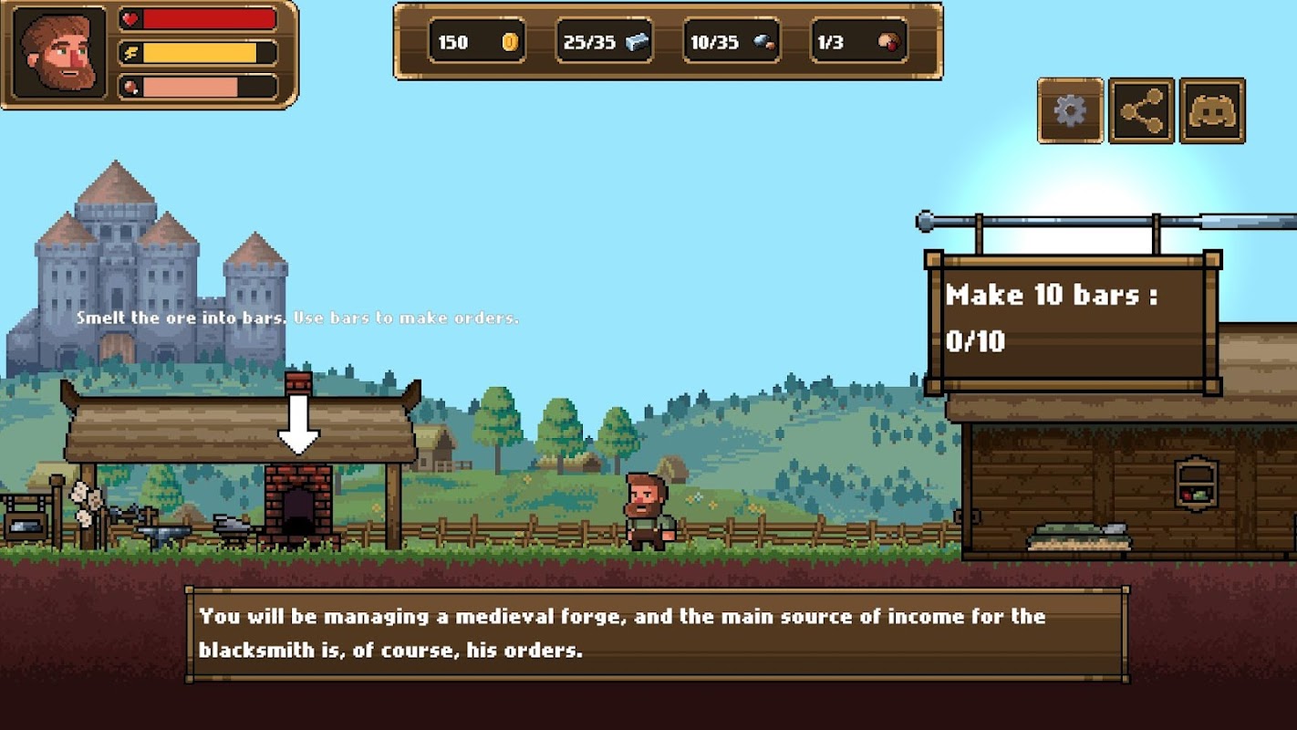 Devenez forgeron. Développez votre forge. Fabriquez et vendez épées et boucliers.