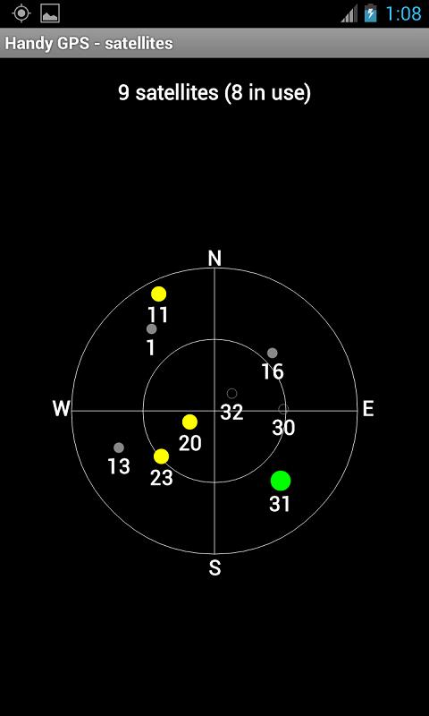 * Affiche graphiquement les emplacements des satellites GPS et les forces du signal.