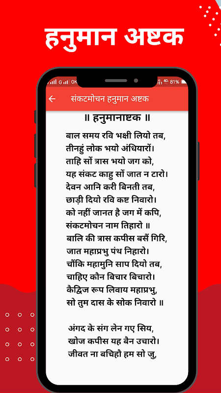 Dans cette application, vous pourrez lire des textes spirituels hindous hors ligne comme Hanuman Chalisa, Sunderkand Path, Haunman Aarti, Mantra et Hanuman Ashtak.