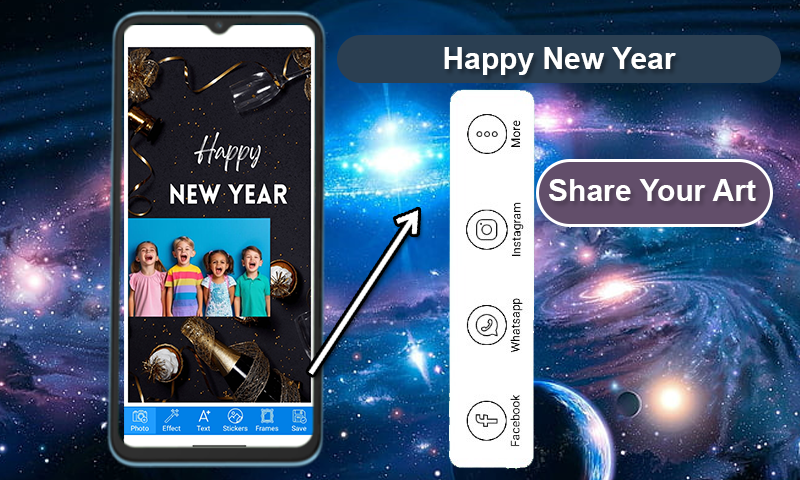 Créez des cadres photo festifs du Nouvel An et partagez-les avec vos amis