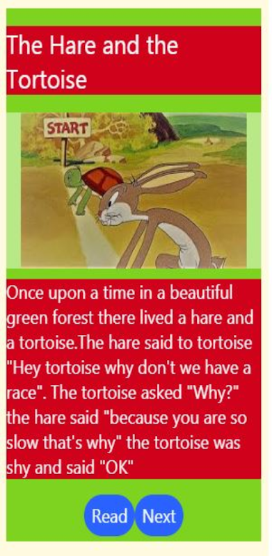 Vous pouvez lire l'histoire de Hare and Tortoise sur cette application.