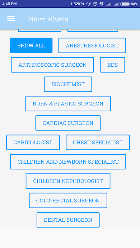 * সকল হাসপাতাল এবং সকল ডাক্তার আলাদা ভাবে সার্চ এর সুযোগ